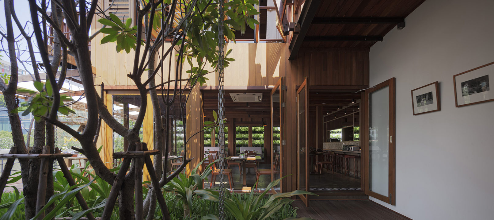 Taking into consideration its historical surrounding and its function as a hotel, the project has been inspired by the traditional Thai homes and canal-side cultures, bringing forward the idea that architecture should strive to evoke the feeling of being “simply at ease” with its context and pace of life. The different elements that embody the core values of the project suggest a thorough translation of architectural syntax, bringing to life the intention of reactivating the local communal spirit