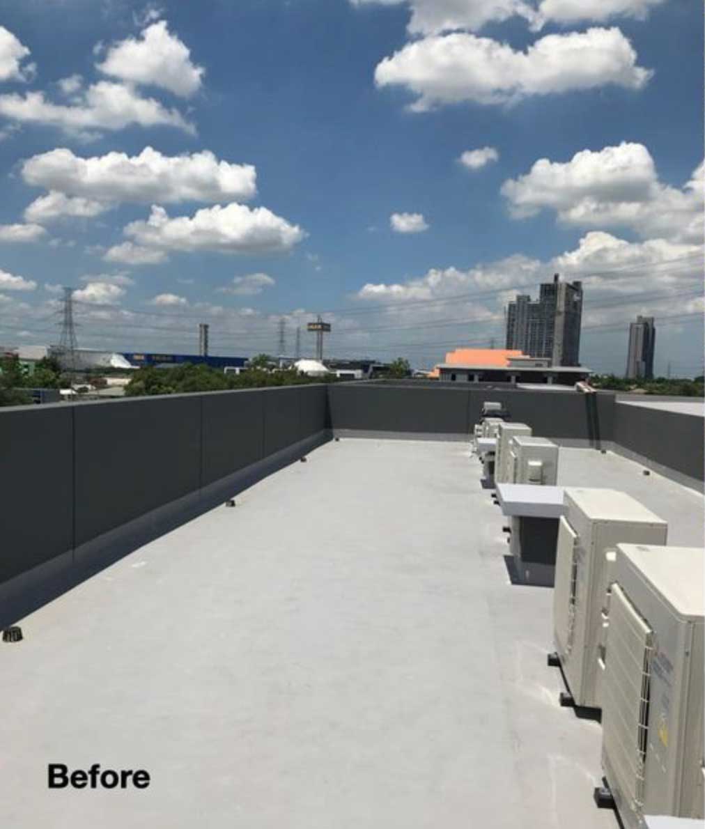 This 3.00 x 17.50 m. Rooftop area atop the 4 storey residence in a suburb in Thailand’s Samutprakarn province was once used as a place where air compressors and ventilation ducts of M&E hood are installed. The landscape architect’s assigned task is to refurbish the rooftop space into a lounging and multifunctional area. The placement of the existing system works, which is considered one of the site’s limitations, becomes what the landscape architect uses to define the functional space’s rectangular layout, resting along the narrow side of the building.