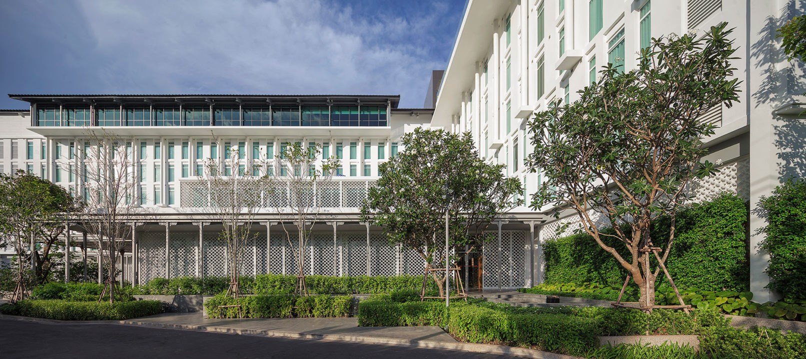 Ramada Chao Fah Phuket is a 7-story high hotel building situated on the West Chaofah Road of Phuket’s city center. The Landscape designer works together with the architects from Arsom Silp Institute of the Art under the design concept that takes the inspiration from derived from local culture and traditions, particularly Phuket’s idiosyncratic vernacular architectural style known as ‘Paranakan’. The concept is reflected in the work’s architectural compositions, from the hotel’s façade, functional spaces, interior decoration all to the way to the design of the interior and exterior landscape. It is translated and expressed in the forms of hardscape materials, motifs on materials’ surfaces as well as the softscape plant selection inspired by the floral patterns from Paranakan textiles and clothing. Everthing is realized to correspond with the exterior landscape, which ultimately results in the hotel’s distinctive characteristic.
